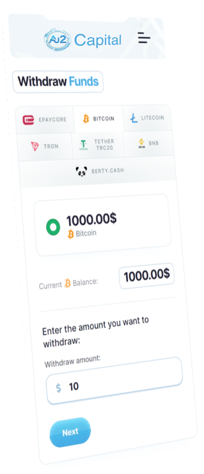After enjoying the financial growth that ai2capital Limited offers, you will certainly want to enjoy the fruits of your investment. Thankfully, withdrawing your profits is just as simple as depositing.
